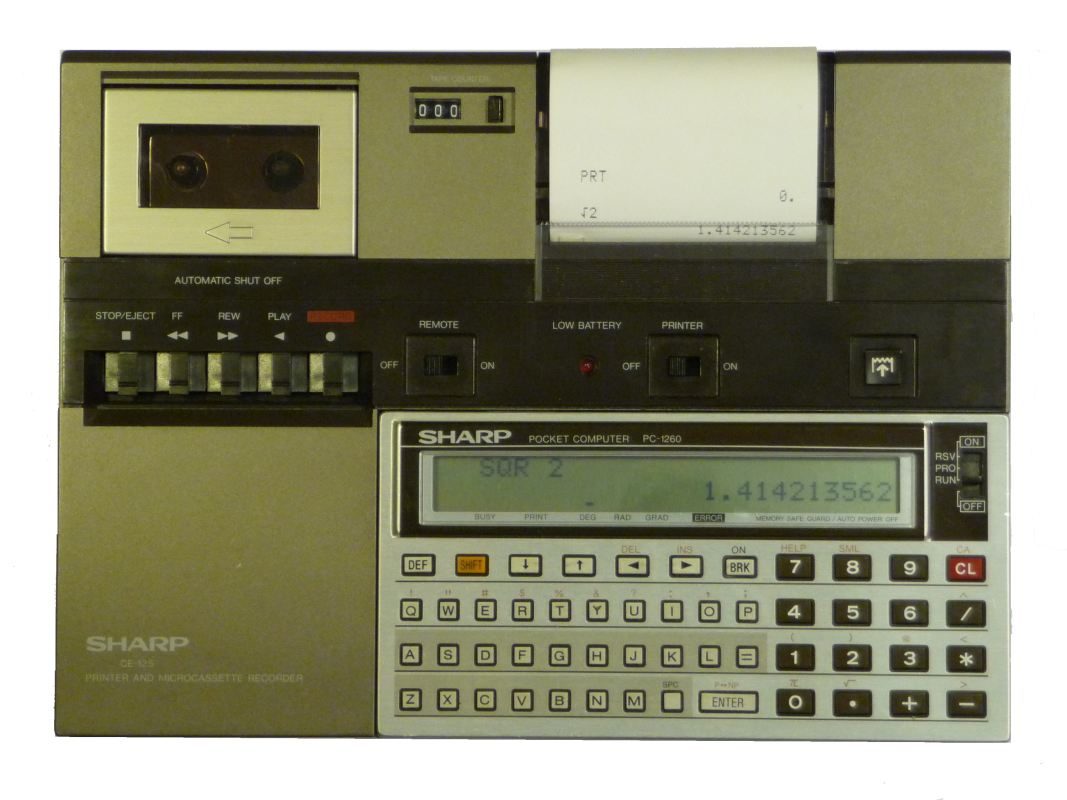 memory, "MEM" reports 9342 bytes (approx. 10kByte) According to the manual the PC-1261 comes with 10 kByte RAM but the PC-1260 only with 4 kByte. So apparently there is some expansion memory installed. |
